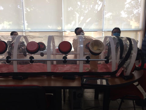 pass-through of medicine,food and equipment.One port is fitted with standard oxygen supply fitting and all ports can be fitted with latex,butyl or neoprene gloves,operated by the medical personnel.